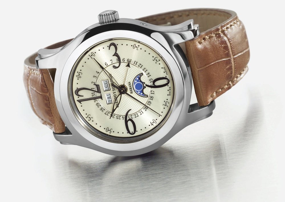 Cuervo y Sobrinos combines Cuban refinement with Swiss technical perfection in this new Robusto collection model. Made for the elegant, active cosmopolitan man, this automatic wristwatch has a complete calendar, with the days and months in two windows as well as a date hand and a moon phase indicator. The dials, with their subtle colours, are embellished with a central Clou de Paris decoration. A contemporary timepiece with a refined, sporty touch.