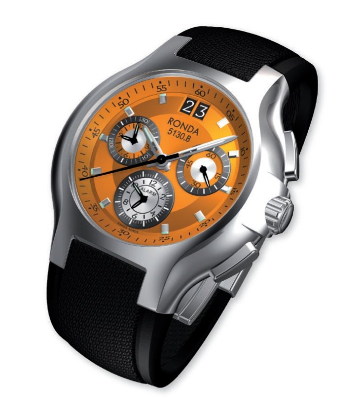 With the Caliber Startech 5130.B, Ronda unveils the very first quartz chronograph movement with an alarm and big date. To satisfy many customers’ wishes, the latest model unites a variety of functions within an elegant design. Four years after its launch, the Startech range encompasses 14 different 12 1/2’’’ movements, ranging from big dates and multifunctions with alarm or second time zone to chronographs and chrono-alarms. This variety of highly attractive special functions is unique.