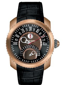Automatic, GG 1004 calibre on a GP3100 personalised base, 28,800 vib/h, 27 rubies, additional Gérald Genta bi-retrograde plate