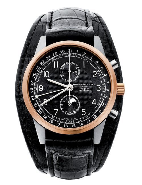 Black counters: 12 hours at 6 o'clock, 30 minutes at 12 o'clock, small seconds at 9 o'clock
