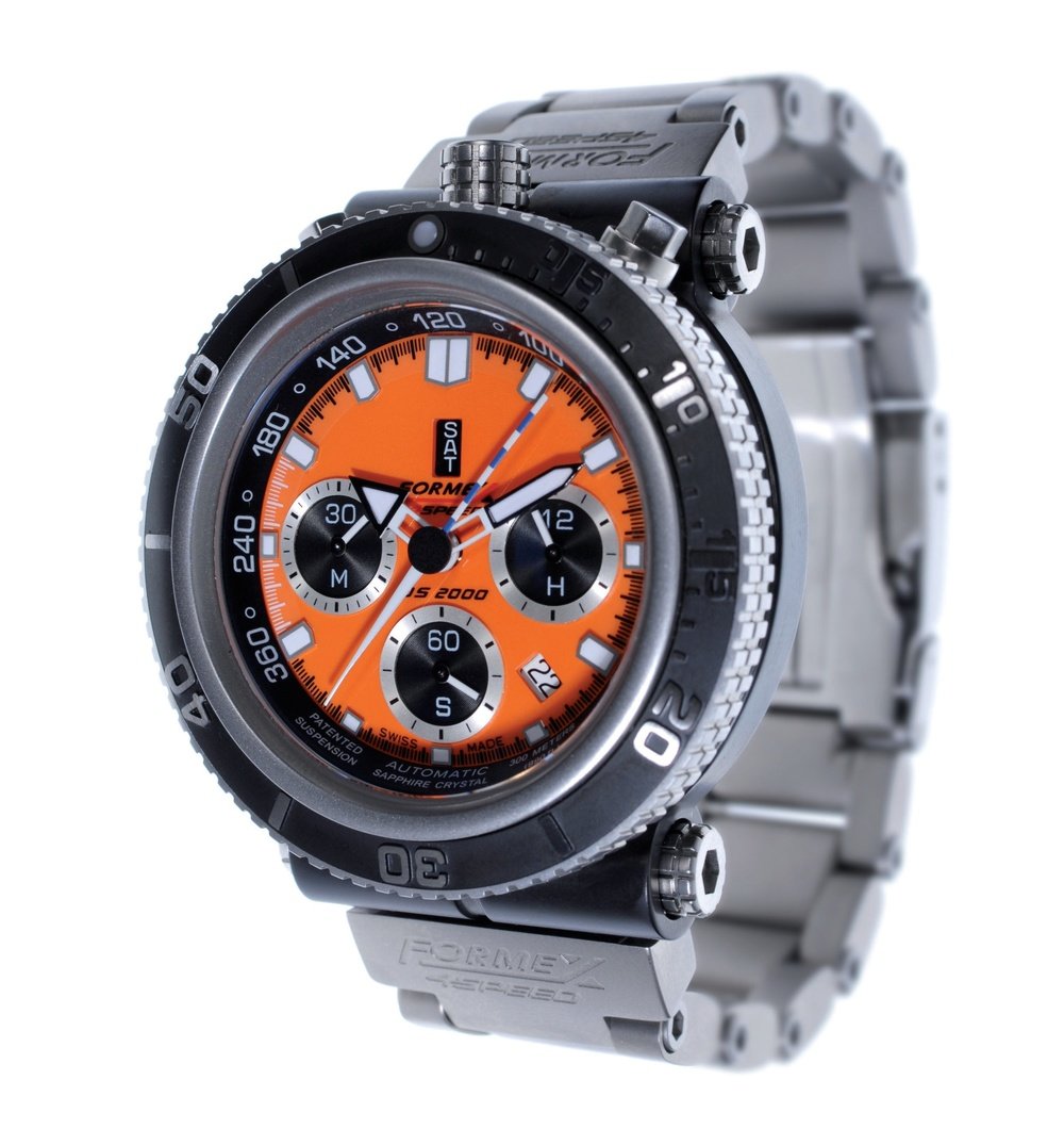 The powerful lines of this diver’s watch from the Water collection make an immediate impact. Thanks to its exclusive shock-resistant suspension system, it hugs the wrist at the greatest depths and while resisting the most severe shocks.