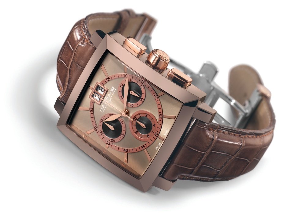 The men’s best-seller in the SAINT HONORÉ range is now offered in a magnificent new bronze-coloured version. This innovative, elegant finish will swiftly become a must! Other distinguishing features are the astonishing geometry and refined structure of the dial, with a minute-track encircling three counters and sunray hour-markers adding a truly dynamic dimension. An extremely stylish timepiece for the demanding, modern man.
