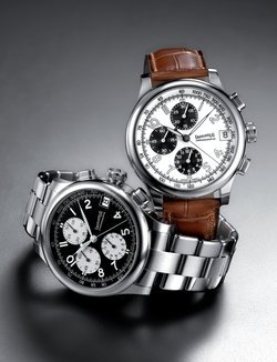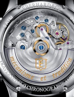 Eberhard & Co set itself a new challenge: to create the first chronograph version of its Traversetolo. This timepiece, with its finely-worked automatic movement and Côtes de Genève rotor, is full of charm. With its generous dimensions, it will appeal to the active man as much for its timeless classicism as for the beauty of its decorated movement, which can be admired through the transparent back.