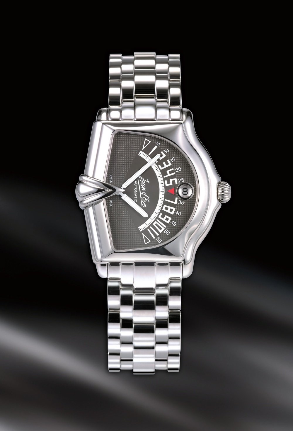 This year is marked by the creation of a new version of the celebrated Sectora, a pioneer in retrograde display watches. The model features an asymmetrical case, making it both masculine and sporty. The hour and minute hands move vertically in a fascinating ballet. To this very original watch, Jean d’Eve has now added a transparent back so that watch enthusiasts can admire the workings of the Sectora II.