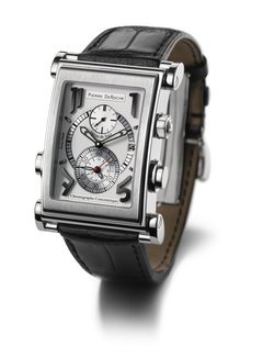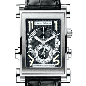Pierre DeRoche revisits its star model by further enhancing its aura of forceful assertiveness. The guilloché dial of this determined and extrovert timepiece features four large raised numerals as well as reinforced hour-markers – a range of rhodium-plated steel elements that lend a new dimension to this unique watch with its concentric chronograph display.