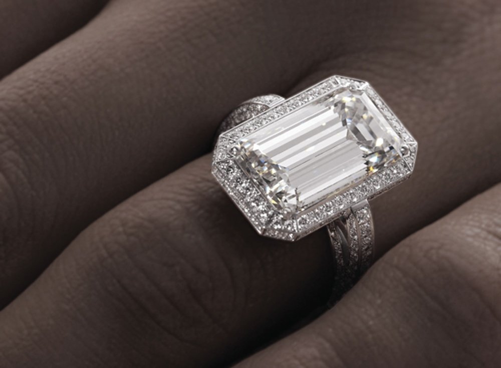 Chopard sublimates diamonds in the new entirely gem-set Haute Joaillerie ring. The large emerald-cut diamond with its exceptional sparkle and clarity, is mounted in accordance to the “Venetian mirror” technique, surrounded by 206 small white brilliant-cut diamonds. A luminous and exquisitely romantic creation; a vibrant new homage to women and to beauty.