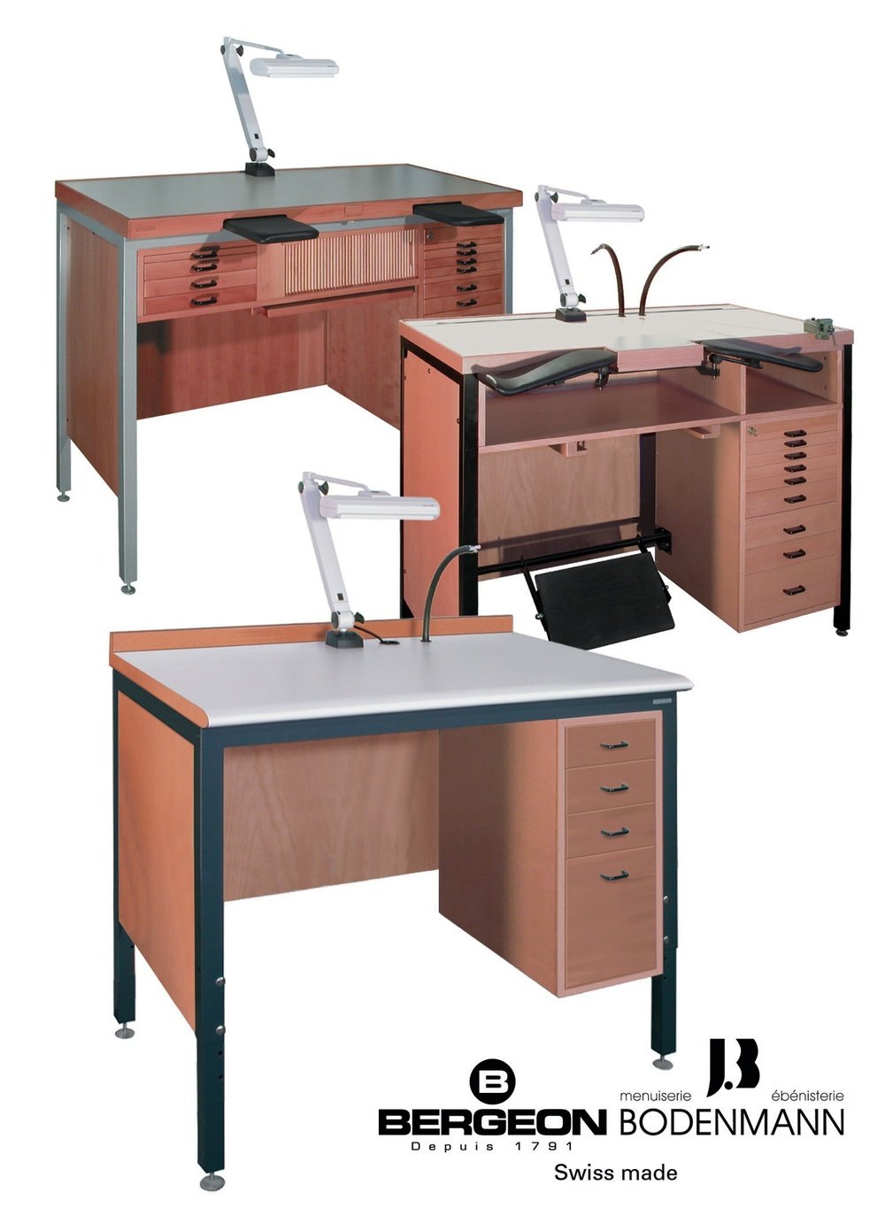 Through an association between the skills of Bergeon and the Bodenmann carpenter-cabinetmakers, this new range of “Swiss Made” workbenches covers the entire spectrum of watchmakers’ needs, from repairs to assembly workshops.