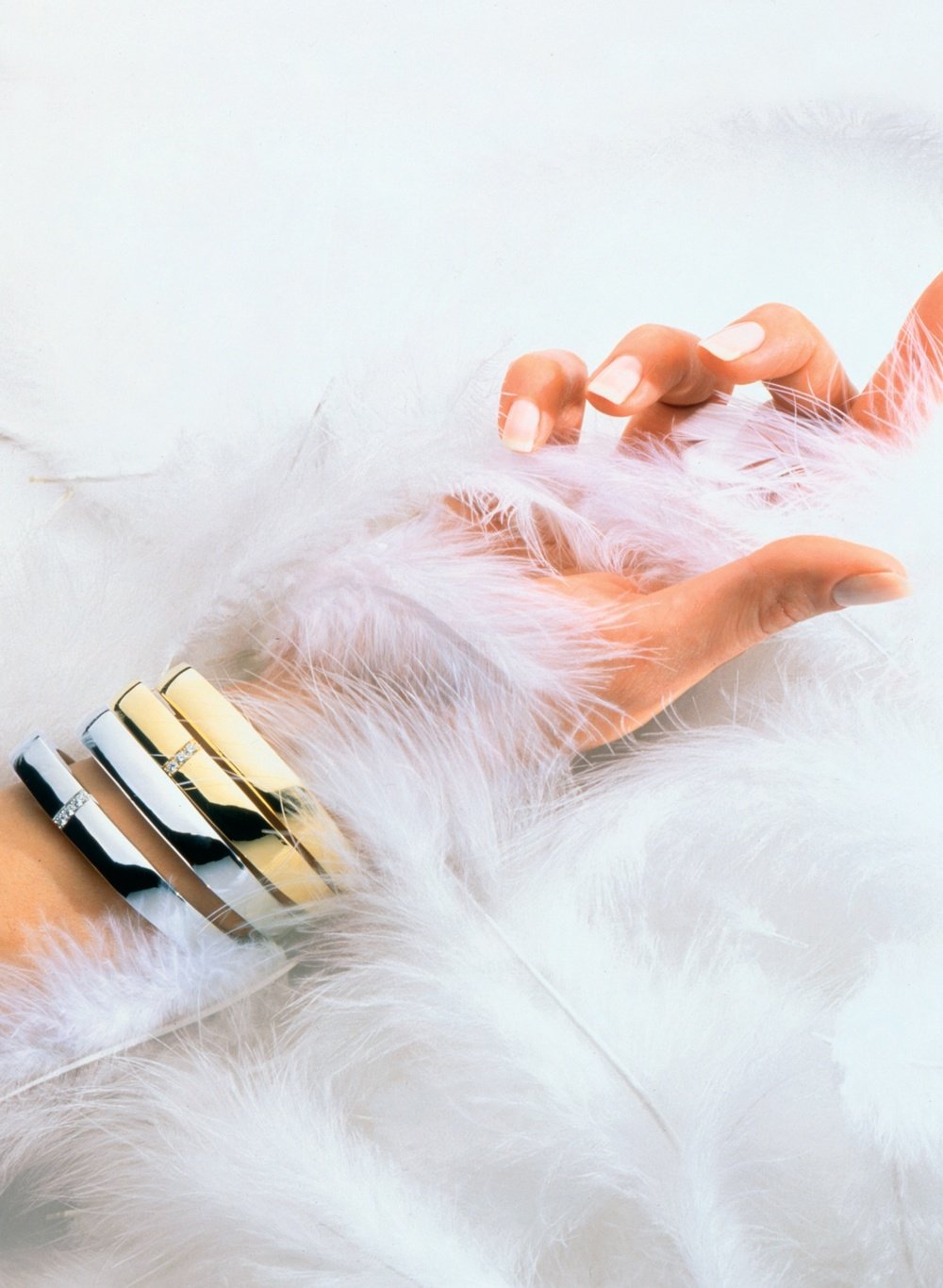 The eminent jeweller from the Place Vendôme has blended simplicity with elegance in a summer collection which gets to the very heart of the matter. This new model of bracelet with its pure and graphic lines perceives itself as a flash of light in yellow or white gold, with the optional embellishment of sparkling diamonds.