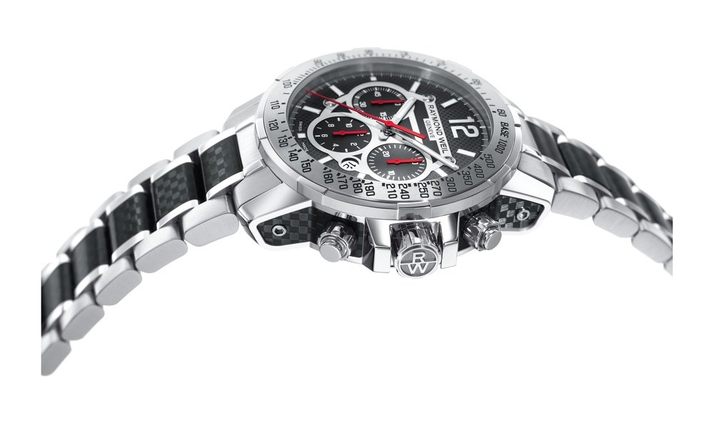 Nabucco, the new, exclusively masculine self-winding mechanical collection from the Geneva watchmaker RAYMOND WEIL, is sculpted in steel and water-resistant to 600ft. With its charisma, style and imposing diameter, it stands out as THE watch for the Man of Character, playing on the contrast between steel, leather, and hi-tec, super-light, ultra- resistant carbon fiber. The quest for perfection in every detail lends the Nabucco collection peerless symmetry, coherence and strength.