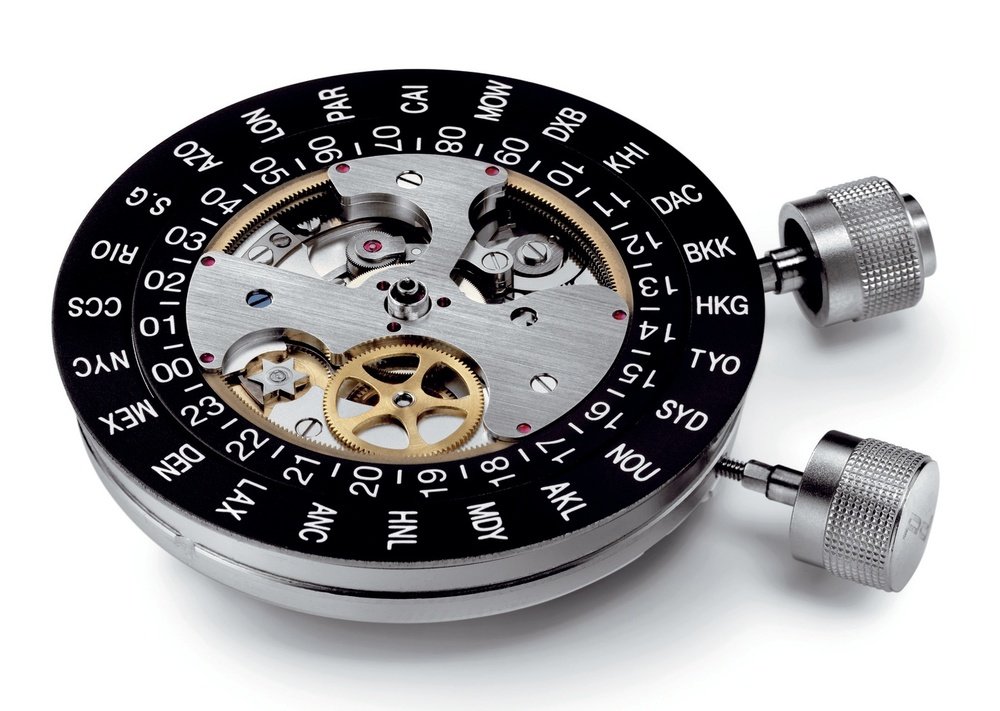 Automatic mechanical, Eterna 6037 calibre with universal time module