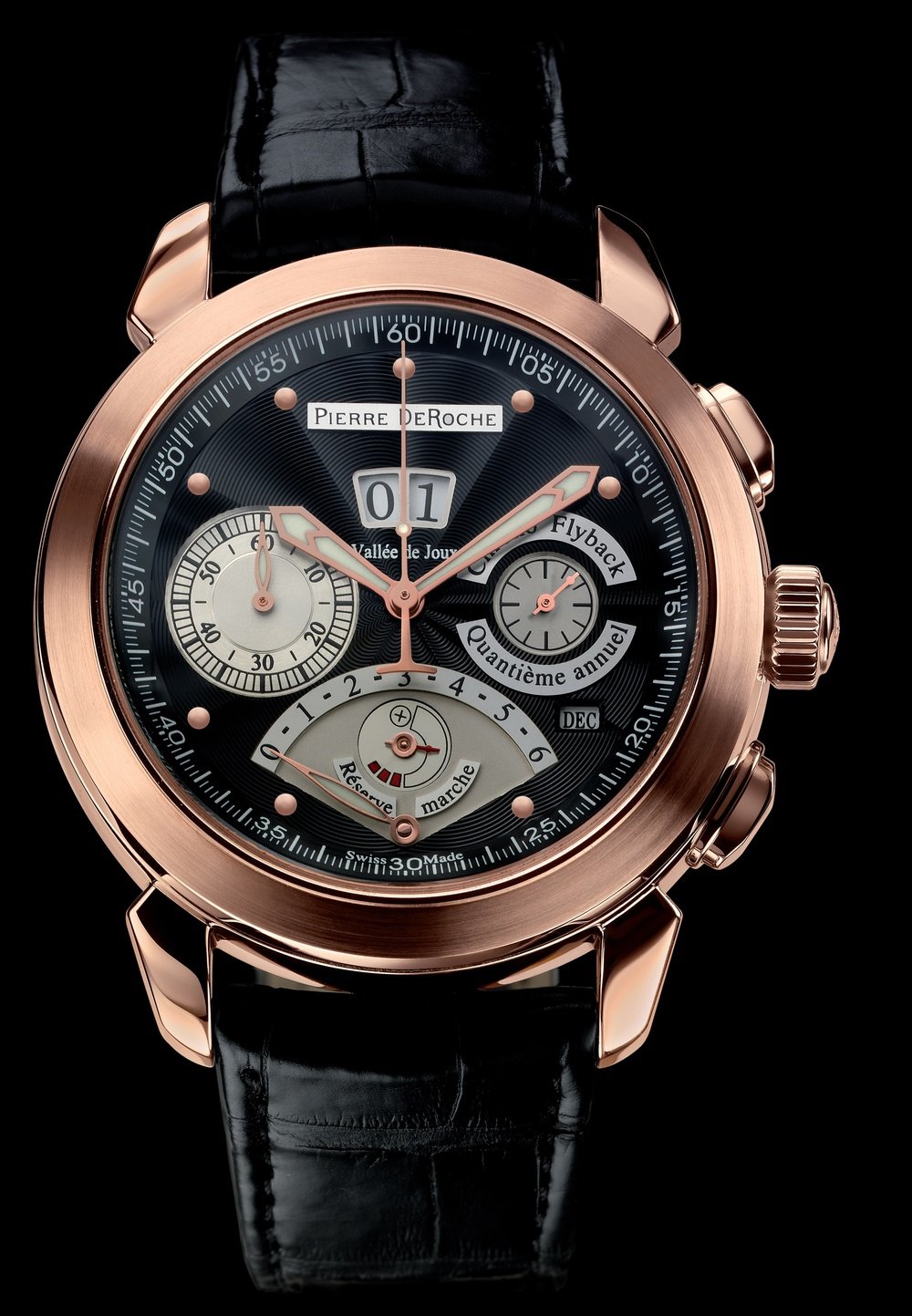 Hours, minutes, small seconds, 60-minute and retrograde 6-hour chronograph functions, flyback, annual calendar, power reserve