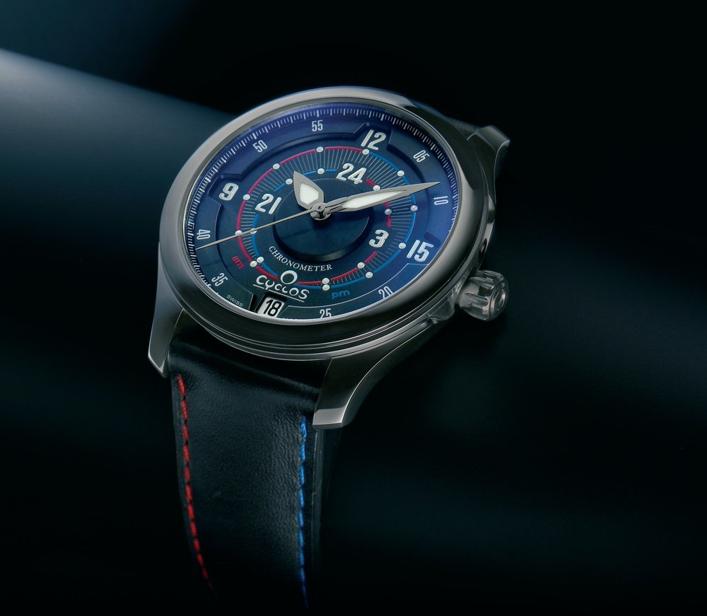 Cyclos is now presenting its intriguing 24-hour DualPhase® in a limited edition of 24 pieces. This model has a steel case coated with extra-hard TiCN. Like the brand’s other models, it clearly differentiates day and night while retaining all the advantages of a classic analogue display. The time is read on two eccentric curves. The planetary module is integrated into the movement and controls the length of the hour hand, which follows the two curves successively, thereby indicating all 24 hours.