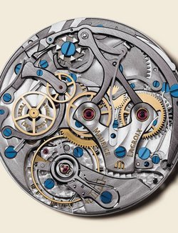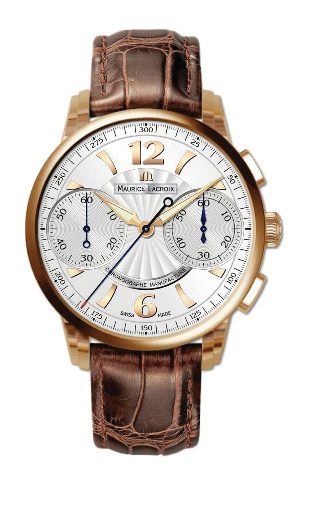 With the ML 106 calibre in the Masterpiece Le Chronographe, Maurice Lacroix presents its first own manufactured movement. This chronograph movement is unique: its proportions of 36.6 mm and the technology behind it are captivating. This technology combines a traditional column-wheel and an innovative lever mechanism especially developed for stopping and returning to zero (patent registering). The Masterpiece Le Chronographe in pink gold is limited to 250 pieces.