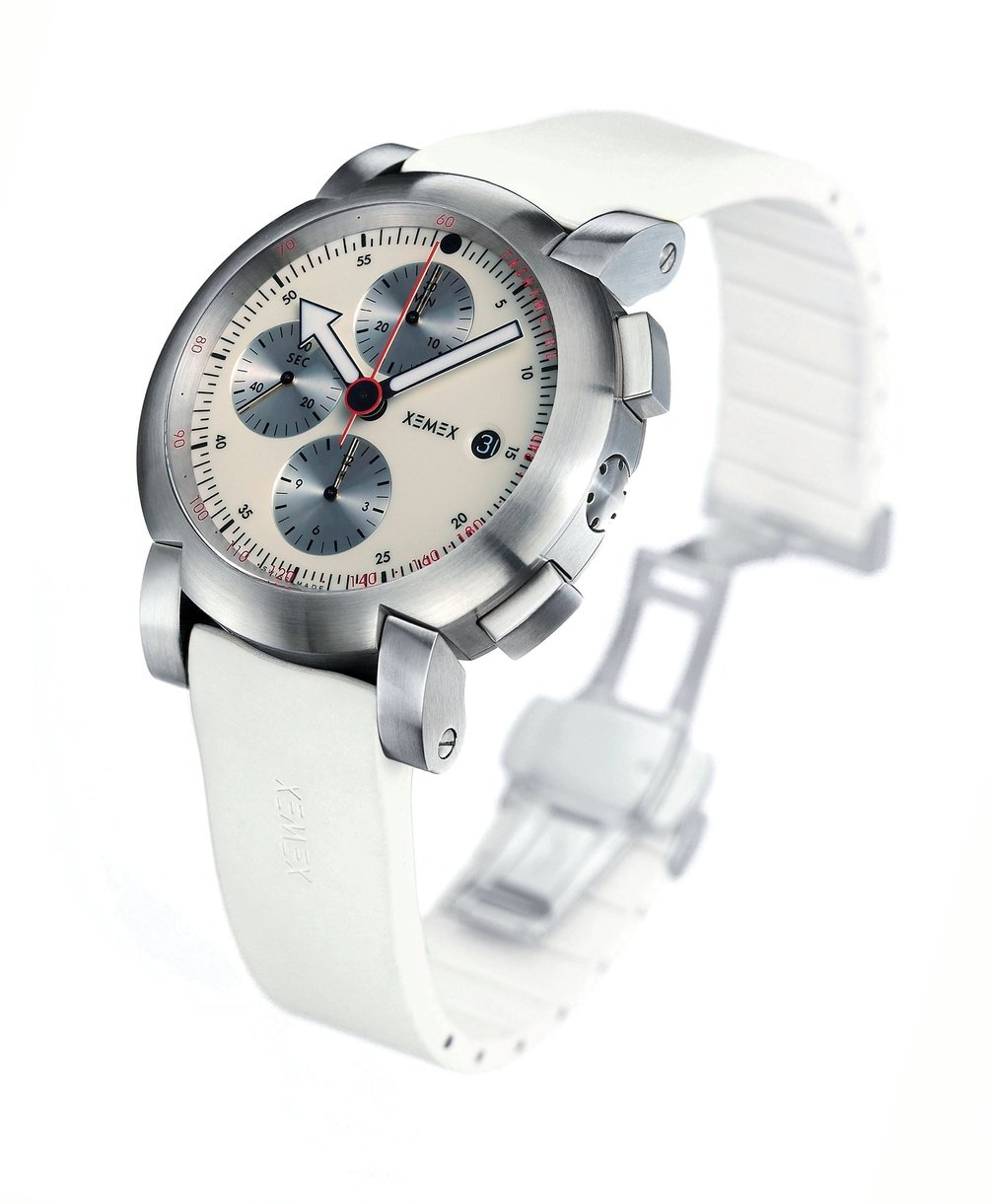 A graceful design, both pure and powerful: while this chronograph will do well on racing circuits, it will also bring style and dynamism to the day-to-day life of men and women who love speed as well as comfort and exceptional legibility in a watch. Its immaculately white dial and strap and contemporary design reinforce the dynamics of this very trendy timepiece.