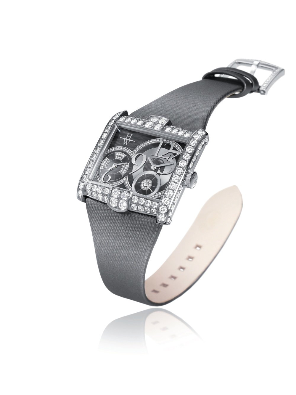 A declaration of style and sophistication, this exceptionally large modern interpretation raises the legendary Avenue line to new heights by exploring the dualities of shapes and functions. The traditional rectangular shape is revisited in an extra-large case with new proportions, while a sumptuous diamond-setting (5.36 cts) gives the pure, slender lines the most feminine of graphic effects.
