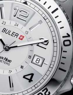 With its pronounced sporty character, this watch sets the tone for Buler’s brand new collection. Simplicity, action and elegance come together in a single watch. Water-resistant to 200 metres, the Ocean Hero really lives up to its name. Legibility is reinforced by its unidirectional bezel and interior ring. This provides an alternative reading and, at the same time, gives the watch a touch of the ultimate in sport-chic.
