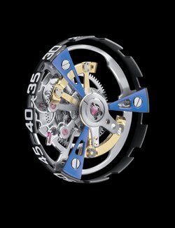 1801: the invention of the tourbillon, a solution to the challenges of gravity. 2008: Concord pays tribute to this horological tradition with a stunning new interpretation. An astounding time-measuring instrument, the C1 Tourbillon Gravity features a tourbillon housed outside the dial and outside the case in a revolutionary perpendicular mechanical concept. The position of the tourbillon enables it to serve its initial function: to negate the effects of gravity in a vertical position.