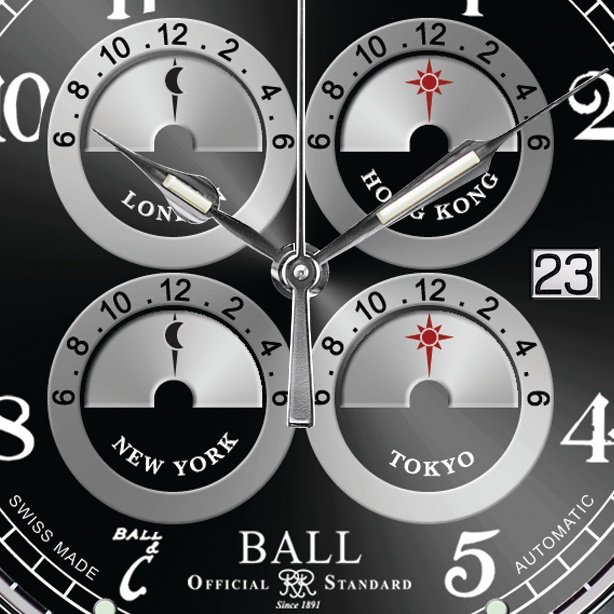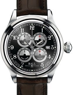 The world is on your wrist thanks to the Trainmaster Five Time Zone! Knowing the time in London, Hong Kong, Tokyo and New York at a mere glance makes travel and business trips so much simpler! The remarkable precision of this timepiece is reflected in the skilful balance of classic and retro design. The emblematic luminescent hour-markers with their micro gas tubes, a trademark of the Ball brand, provide perfect legibility.