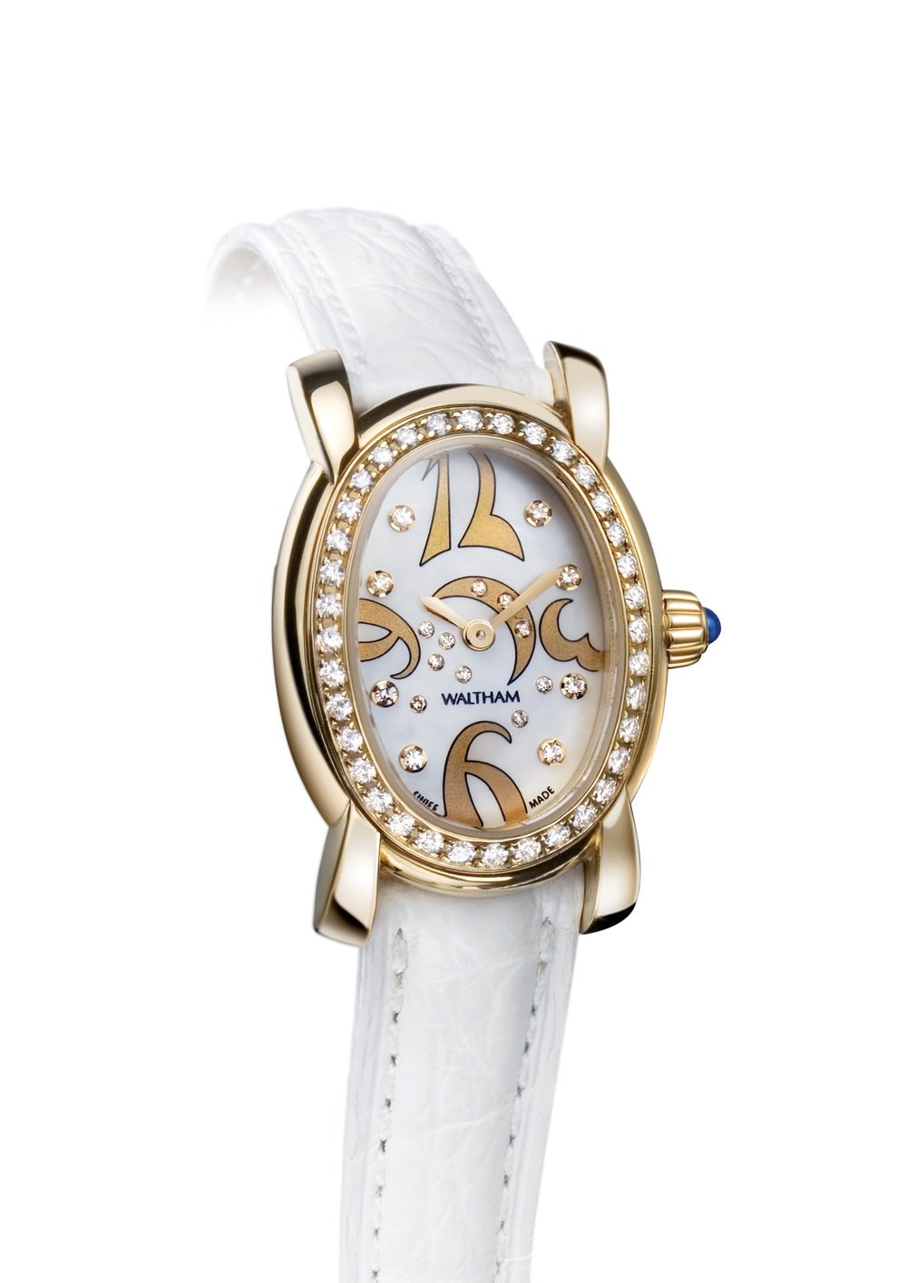 White gold settings with 10 brilliants; 8 brilliants for hour-markers (0.065 ct)