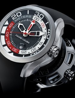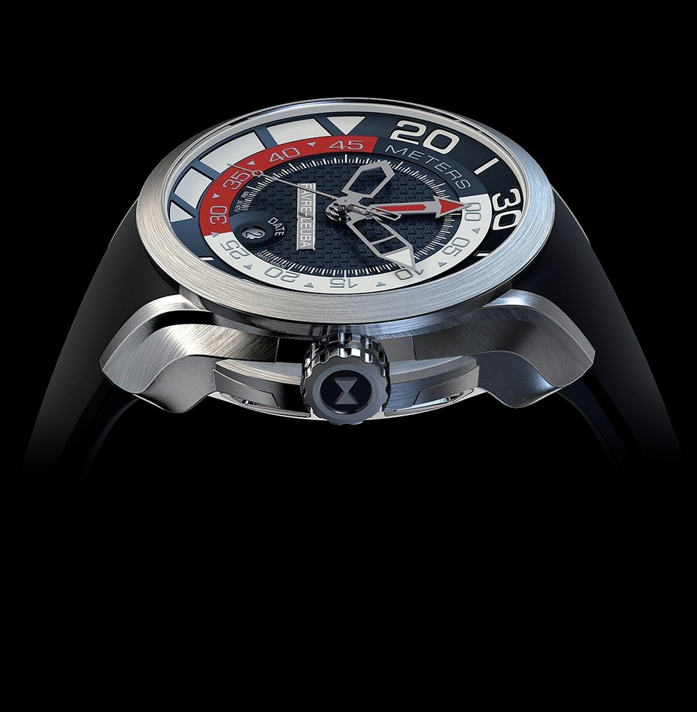 More than 40 years after its revolutionary impact on the world of diver’s watches, the legendary Bathy is making a major comeback in an automatic version! Its innovative depth gauge works on a beryllium copper membrane which contracts under the pressure of the water entering the double back. The deviation is less than 0.18%! Such precision – pushed to its limits in the most extreme conditions – is one of the hallmarks of Favre-Leuba, a company that has been making watches for almost 300 years.