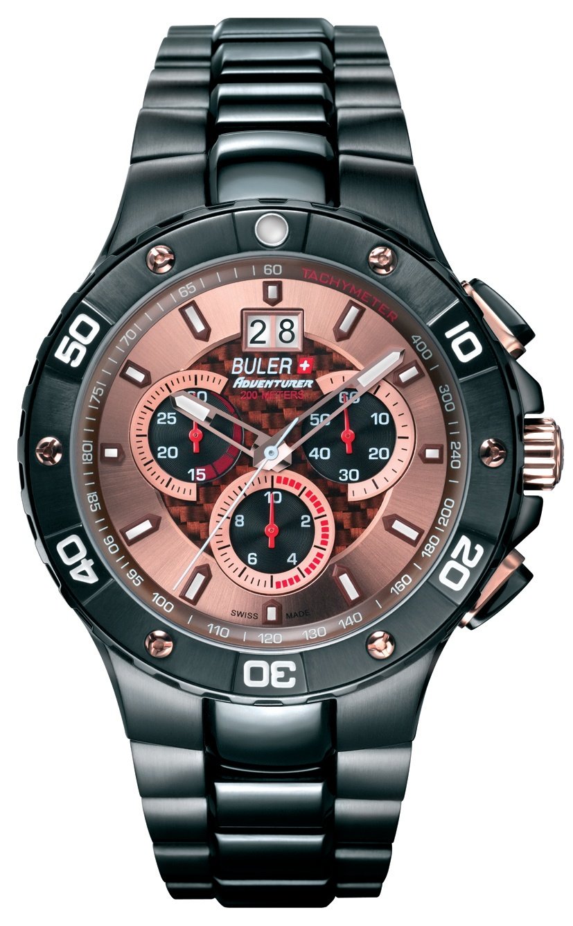 A chronograph to the tenth of a second, a tachometer, tried and tested materials, and water-resistant to 200 metres. The name Adventurer was not chosen by chance: its resistance and practical functions will make this new collection, offered in seven colour combinations, an indispensable partner for every adventure.