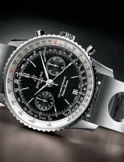 For its 125th anniversary, Breitling has revived its legendary Navitimer. Launched in 1952, this timepiece became an iconic object. With its exclusive chronograph movement, certified by COSC to ¼ of a second, and centre 60-minute totalizer, this revival is embellished by the highly original Air Racer rigid bracelet with holes, a tribute to a modern design icon dating from the 1960’s. More than ever, Breitling has remained faithful to its history: to its passion for chronographs on the one hand and to its destiny, closely linked to aviation, on the other. It is not by chance that the “official supplier to world aviation” has chosen to celebrate this most emblematic of instruments for professionals in this anniversary year.