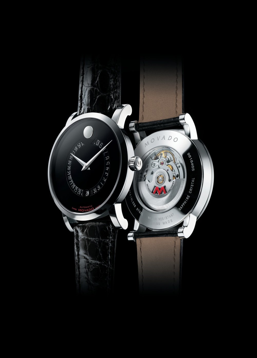 Movado, the brand with the celebrated sun-dot at 12 o’clock, launched a new era when it introduced a complete date window on its original Calendomatic® automatic timepieces in 1946. Now, it is proud to present the Red Label Museum Calendomatic™. Inspired by its illustrious namesake, it displays an original centre date disc, while a convex window in the sapphire crystal magnifies the day date at 6 o’clock. Both unassuming and modern, it harbours a good many surprises, like the emblematic red “M “ chevron, espied through its sapphire crystal back.