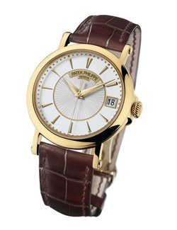 The new Calatrava Officier Ref. 5153 features the Officier, a yellow gold case as rare as it is complex, created by the craftsmen of the brand’s manufacture. This timepiece bears all the hallmarks of refined classical watchmaking in the purest Patek Philippe tradition: the manufactory-made 324 Central Second calibre, Bassine-style bezel, sapphire crystal back protected by a hinged anti-dust cover, horns with visible screw attachments, a distinctive turban-shaped crown, and a finely worked opaline dial with a hand-guilloché centre and gold applique hourmarkers.