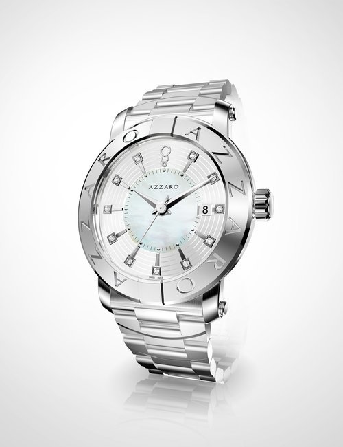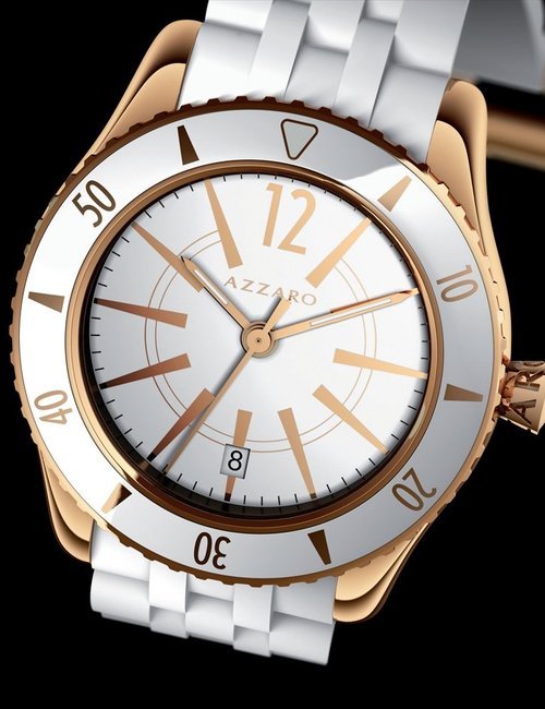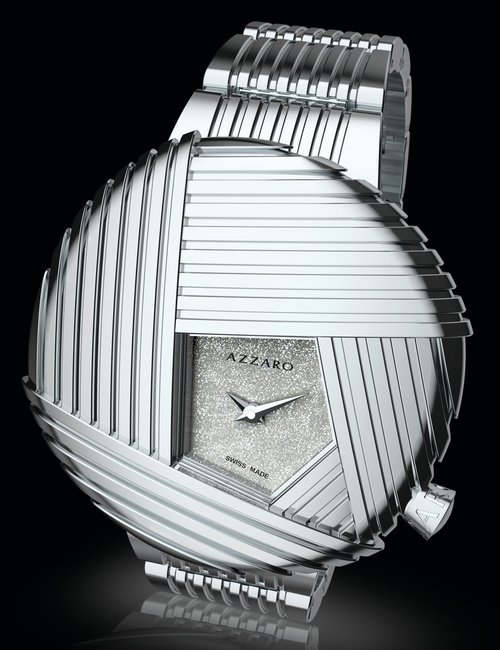 Breaking with traditional aesthetic watch codes, the A by Azzaro embodies femininity in an avant-garde design with an unconventional trendy allure. Offered in a classic or a diamond-set “glam-rock” version, this collection comes in steel as well as steel with pink gold PVD.