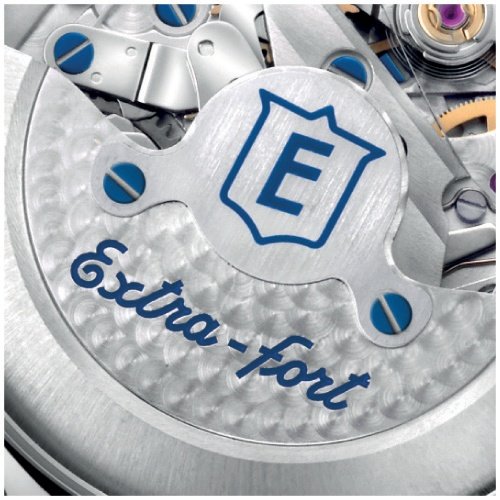 The embodiment of Eberhard’s savoir-faire, the Extra-fort Edition Vitrée brings together simplicity and sophistication, giving life to an expression of constantly reinvented time. Harmonious lines combine with a choice of dials, ranging from classic black or white, to “sport black” with red finishing touches, to elegant chocolate. The sapphire crystal back reveals a refined movement, whose elegant circular-graining extends harmoniously to the rotor. Adding the ultimate touch of distinction is the cap over the rotor’s bearing stamped with the brand’s “E” escutcheon.