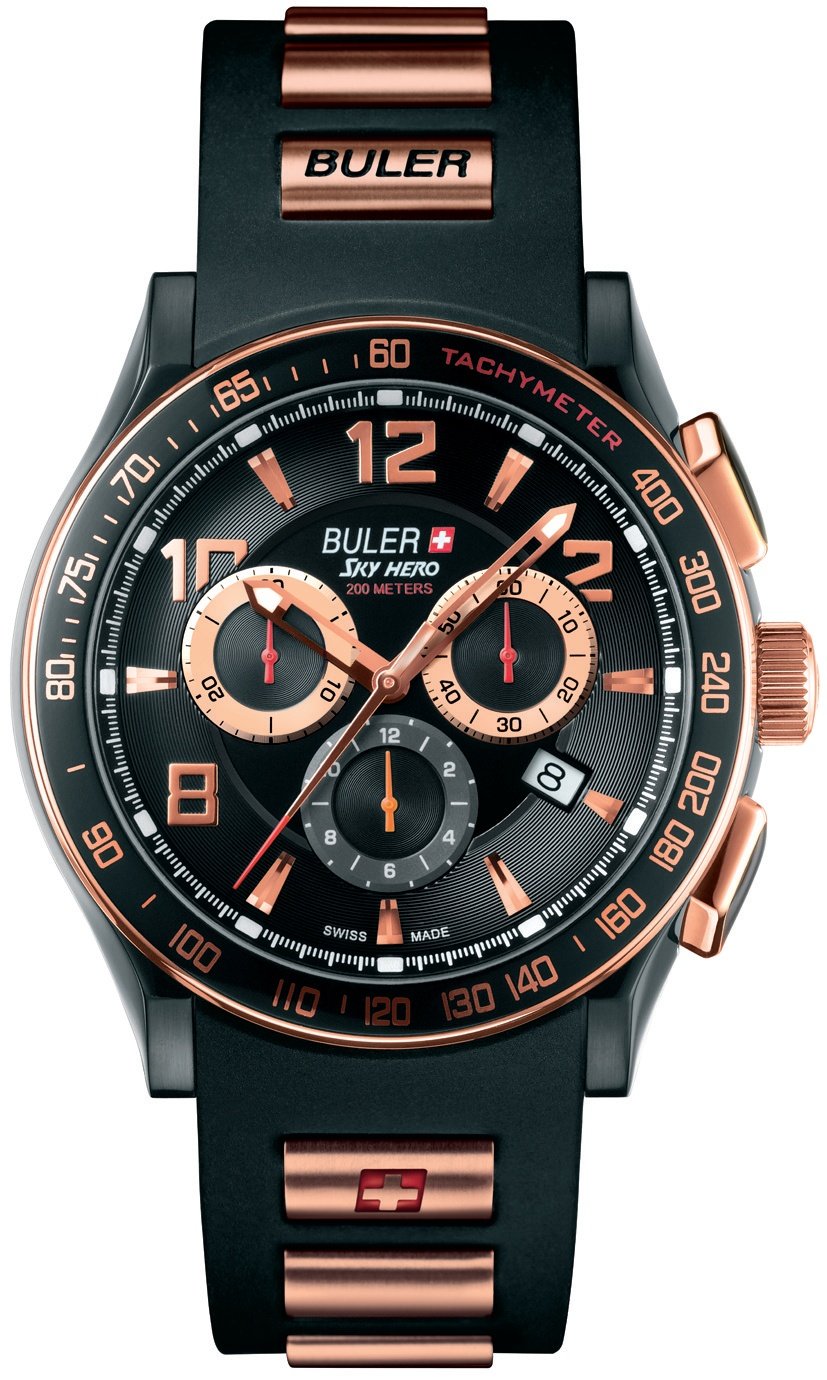 Performance, design and elegance. This chronograph, the very latest from the Sky Hero collection, will satisfy all tastes as it comes with a silvered, black or brown dial and a truly elegant two-tone bracelet or super sporty black rubber strap.