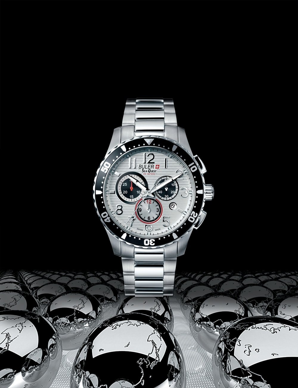 An indispensable partner for any sporting activity, Buler’s Sea Quest is remarkable for its rotating unidirectional ratchet bezel, high-performance chronograph and water-resistance to 200 metres. Added to this is a meticulously studied design that gives the watch a touch of the ultimate in sport-chic.