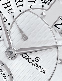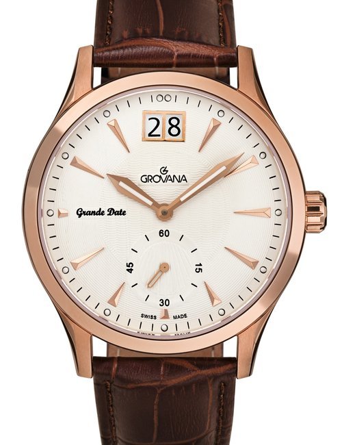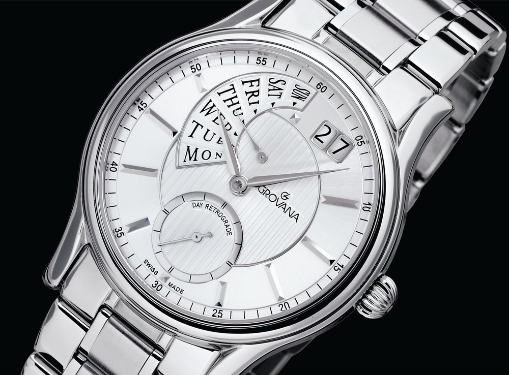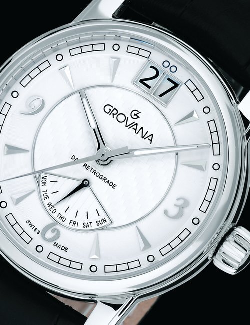Grovana has added a new timepiece to its Retrograde line in a truly captivating composition. An exciting asymmetrical combination of the day retrograde display and large date combined with a small seconds at 6 o’clock offer a blend of elegance and simplicity and a highly accomplished aesthetic design. Available in a stainless steel or PVD 5N pink gold-plated version with a black or silvered structured dial, this new creation from Grovana is well set to follow the path of success blazed by the collection’s earlier models!
