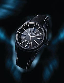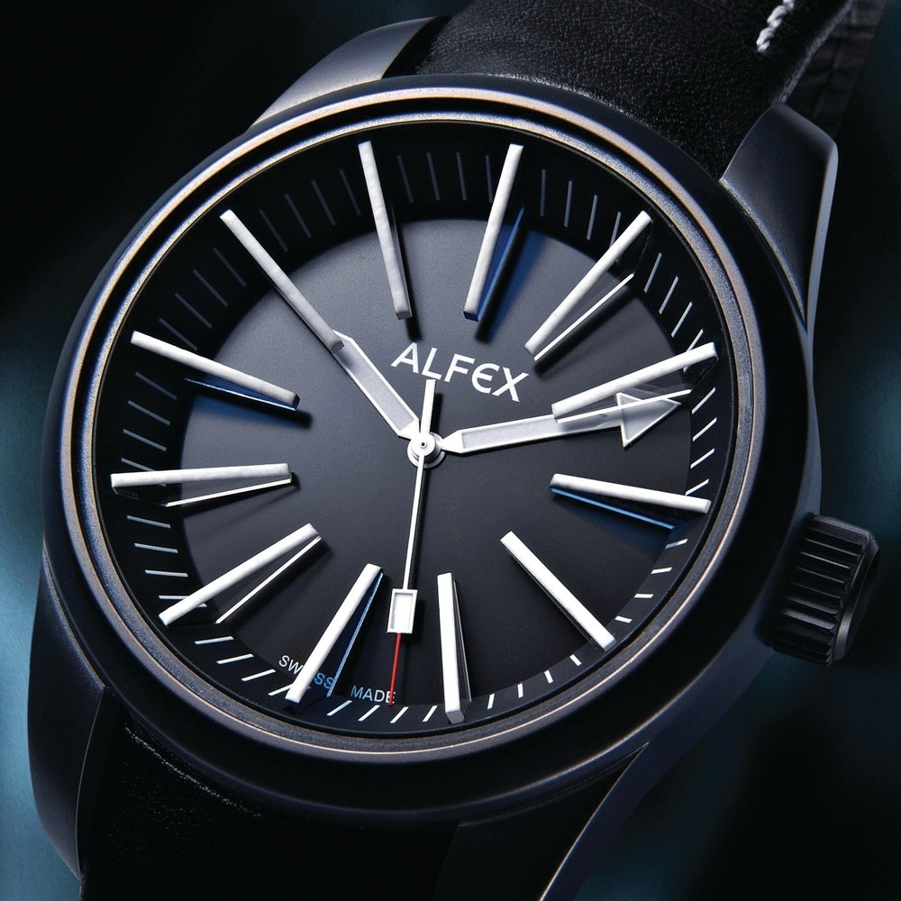 Winner of the prestigious Chicago Athenaeum Good Design Award 2009, the Black Light attracts immediate attention. The world’s first three-dimensional wristwatch, it is very easy to read in the dark thanks to its Superluminova-coated sapphire crystal hourmarkers, with the hands turning underneath. Thanks to the skilful use of the day/night contrasts, its black dial reflects intense luminosity. By exceeding the parameters laid down by design and opening up new dimensions, Alfex confirms that it has always been – and always will be – a “design addict”.