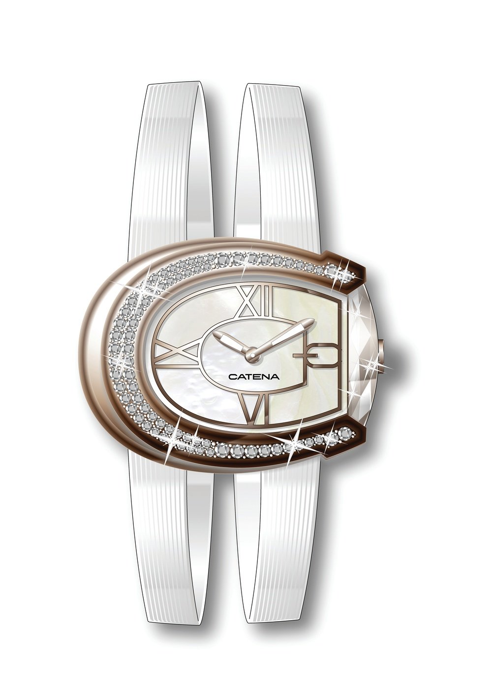 With its clever combination of a horseshoe – the brand’s emblem – and the Catena logo, the Couture will be a sure hit with fashionistas looking for originality. Inimitable styling, iridescent mother-of-pearl, a pink gold-plated steel case under a river of diamonds and a super trendy bracelet are the special features of just one of the many versions of this timepiece designed to please all tastes.