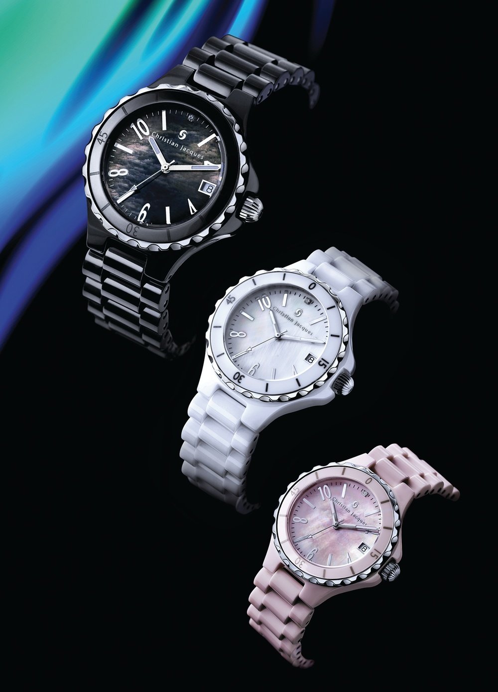 This Swiss-made watch in iridescent mother-of-pearl and Japanese ceramics comes in a palette of shimmering colours. The dream of any woman, the Ceramica from Christian Jacques embodies purity and softness and will meet all her desires thanks to its interchangeable bezel in steel or plated pink gold, or with 118 brilliants for more glamorous occasions.