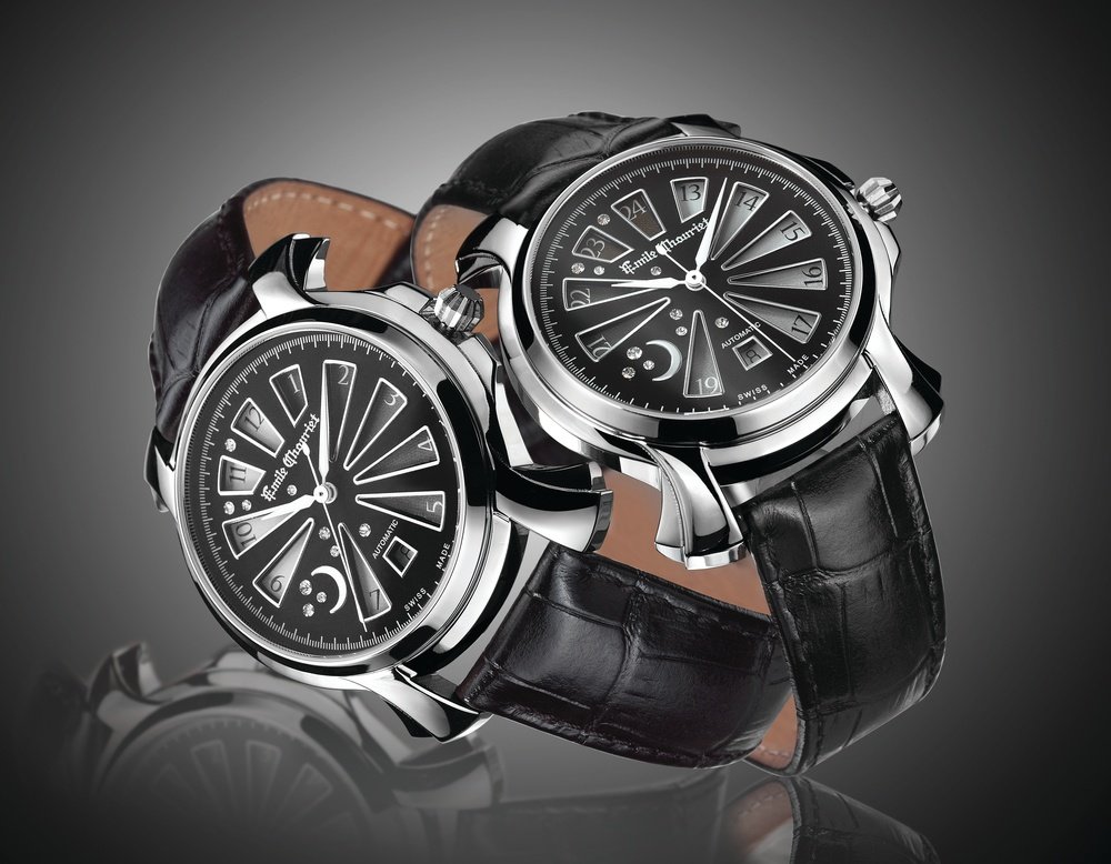Emile Chouriet has “caught” the moon with the first complication it has ever designed and manufactured from A to Z in-house. Two years were needed to develop this astonishing model with its double time display – from 1 to 12 am and from 1 to 12 pm – on a sectional dial. Ten diamond stars shimmer on the dial of this original composition under the benevolent gaze of the moon.