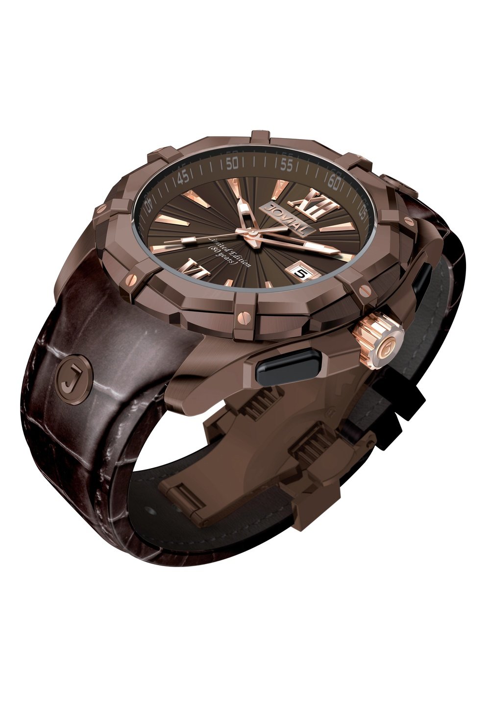Growing younger by the year, Jovial has decided to extend the festivities of its 80th anniversary with a commemorative piece, the Limited Edition 80 years. The apotheosis of what has been a very emotional year for the brand, this piece embodies to perfection the sense of revival which has characterised the anniversary collection: a supremely innovative high-tech case of delicious chocolate-brown colour, contemporary materials, and a skilfully orchestrated interplay of structures and volumes with the most meticulous finishing to create a perfect balance.