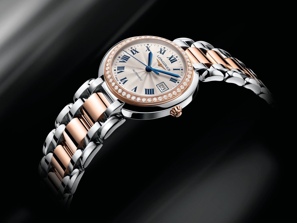 A variation designed around the lustre of steel and the warmth of pink gold for the new PrimaLuna from Longines. The delicate contrasts of the materials are echoed by a mother-of-pearl, white or silvered dial, which becomes truly radiant when decorated with diamonds, as if to better reflect the brilliance of the watch. Harmonious and elegant and offered in a variety of sizes with different movements and bracelets, the PrimaLuna captures the diversity of the contemporary woman. Promising rich, secret moments, this composition of sweet harmony is an invitation to dream.