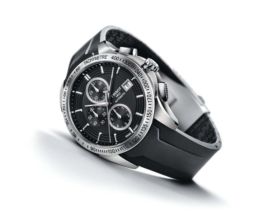 Thanks to the new, revolutionary ETA C01.211 chronograph movement recently introduced by Tissot, the Veloci-T Gent brings together elegance and sportiness. Two models share the same black and silver tones, as well as a design inspired by speedometers. The circles surrounding the dial remind us that the watch is inspired by racing tracks. A finely graduated tachometer underlines the importance of precision in the worlds of both high level automobile sport and horology. Perfectly in tune with the tastes and needs of the active man, the Veloci-T offers different options so that every man can express his own personal view of modernity.