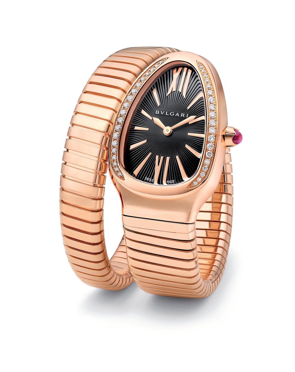 A contemporary reinterpretation of an iconic model, the Serpenti has the stature of a goldsmith’s masterpiece. Entirely hand-made, the legendary Tubogas bracelet developed by Bvlgari in the 1950’s coils around the wrist, suggesting the strength of a snake, the symbol of eternal youth and immortality.