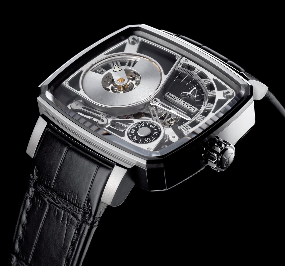 Presented for the first time at Baselworld, the HL08 opens the door to new ways of reading the time. A little horological masterpiece, it is designed around an extremely complex manufactory-made movement. For example, along with the retrograde minute display was the added challenge of creating a jumping disc with a window indicating the jumping hours, a challenge in terms of energy and inertia that Hautlence achieved in a very original manner: the jumping hours on the disc and the retrograde minute display are both driven by the minute cannon-pinion. This novel solution is protected by a patent. Limited edition of 88.