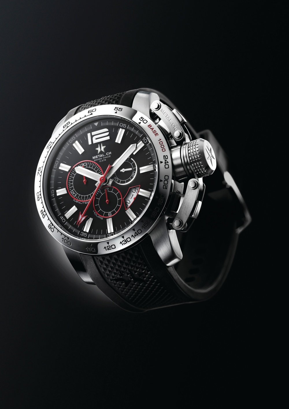 With its strong, innovative lines and understated yet compelling character, the Chronosport from Metal.ch has been designed for both men and women. A technical piece with a tachometric scale on the bezel, it comes in a 44 or 47 mm version in either steel or black or pink gold PVD. It boasts the brand’s identifying features, a crown with a double protection system, a palette of off-colour dials and, of course, the famous star logo. Offered at a particularly attractive price, this powerful watch will conquer a dynamic, cosmopolitan public that knows exactly what it wants.