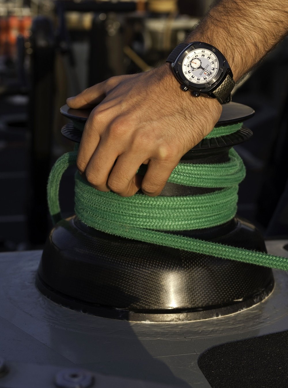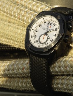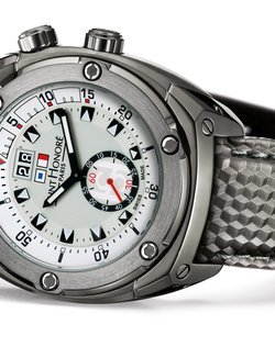 Saint-Honoré likes to put its watches to the test: its new Haussman Regatta underwent its baptism of fire (or water) on the wrists of Sebastian Col and Jochen Schuemann during the Louis Vuitton Trophy in Nice, France. Over two weeks, the Haussmann Regatta was submitted to the harsh trials of competition, and came out with flying colours. One of its strong features is the timer on the inner rotating bezel, enabling precise countdown to the crucial moment of the regatta: the start. As for the dial, it is in pearly white to ensure total visibility. With this timepiece, Saint-Honoré offers reliablility, robustness, as well as elegance. Limited edition of 125.