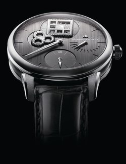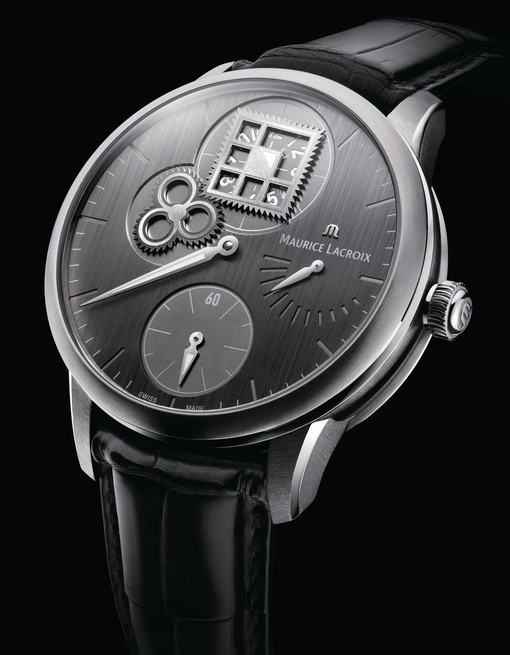 The challenges Maurice Lacroix sets itself are considerable: to push back the limits of timekeeping and change its perspectives. It is with its flagship line, Masterpiece, that the brand has propelled watchmaking towards a new dimension and, by creating a square wheel, taken a new angle on time! A world first, this amalgamation of technology, innovation and aestheticism is inspired by traditional regulator watches and displays the hours by means of a geometrically openworked square wheel at twelve o’clock. Driven by another wheel, shaped like a cloverleaf, it turns regularly, indicating the hour by means of a raised corner on its centre square. By combining the techniques of photolithography and electroforming, the timepiece attains a degree of unrivalled precision. The movement plate takes on the role of the dial, and its matt and satin finishing emphasises its size, giving it an appearance that is as amazing as it is hypnotising. Limited to 99 watches.