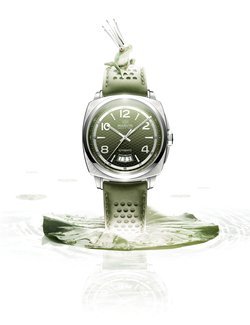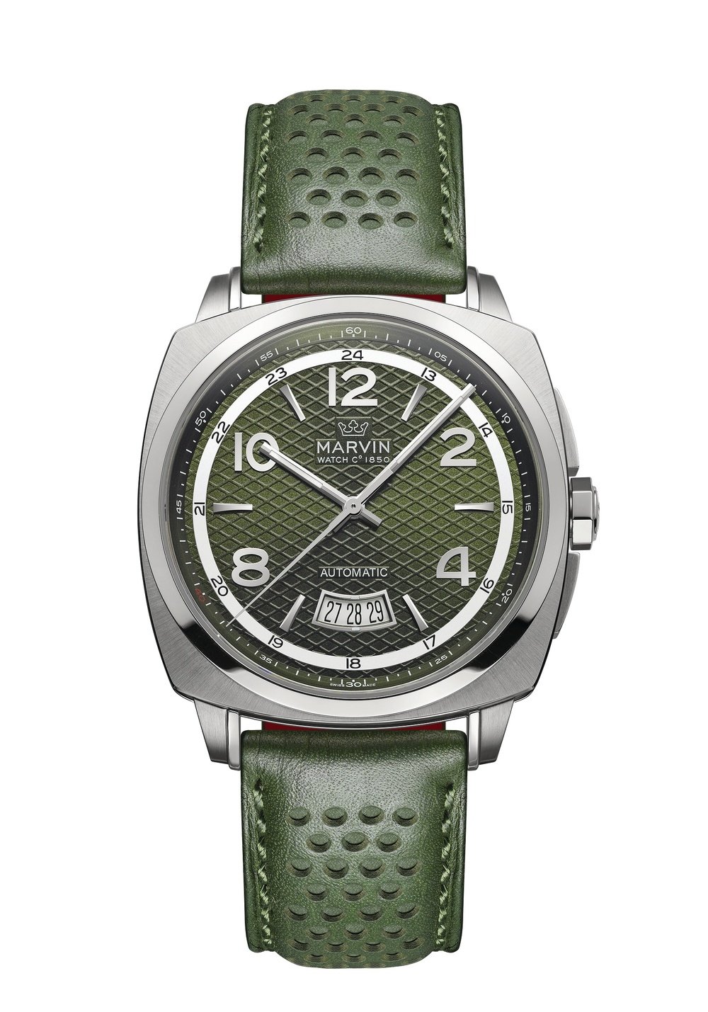 This offbeat and unexpected 160 Cushion Kaki model, an anniversary edition commemorating the brand’s 160th anniversary, is inspired by the Malton Spéciale issued in 1906. After the round version, this new timepiece expresses a fresh approach based on vivid contrasts. Featuring bold khaki tones, a cushion-shaped case, a guilloché dial and a vintage strap, this model invites the wearer to share in a fairytale vision of time. While conjuring up dreams, it also embodies the quality inherent to Marvin Watch Co. 1850. The brand’s star collection, Malton 160 Cushion, is built around a variation on four calibres, admirably embodying the brand values “New Time, New Codes” and conveying an entirely original approach.