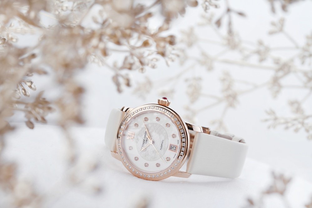 Designed by ladies for ladies, the Ladies Automatic collections reflect their values and aspirations. The Double Heart Beat and Love Heart Beat lines are distinguished by a shaped opening on the dial, while the Classic line features finely worked, diamond-set mother-of-pearl dials with guilloché hearts at the centre. Refined, delicate timepieces, with discretion and sophistication the key words, they have round, elegant cases and a transparent back through which to admire the automatic movement. For each model sold, Frederique Constant will donate the equivalent of the cost of a child’s heart scan, which could save the child’s life. An iconic timepiece with a large heart!