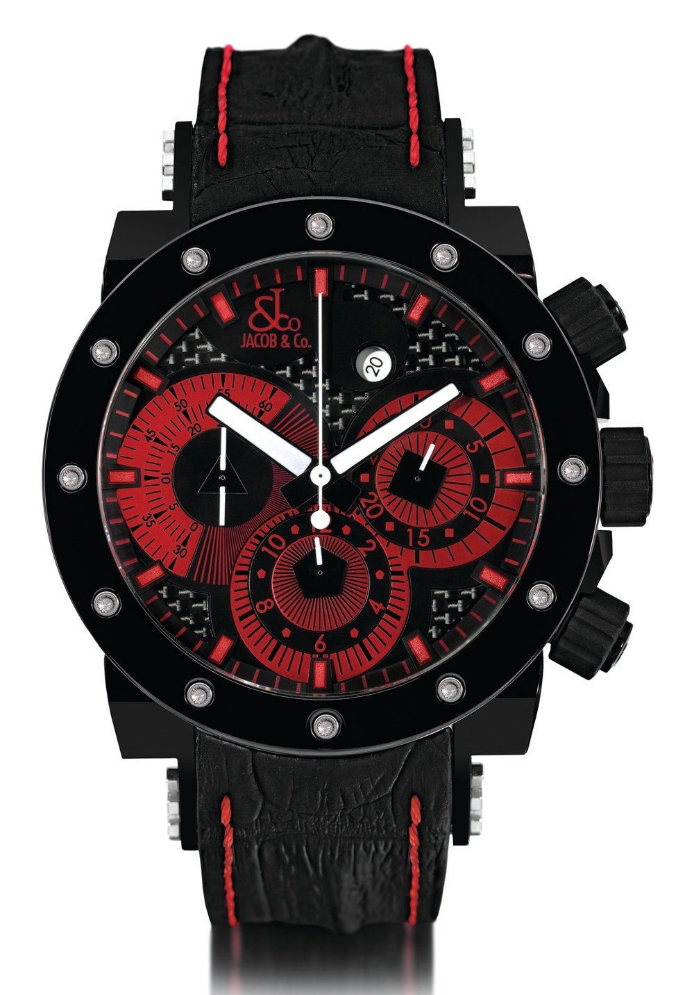 Mechanical self-winding, Jacob & Co Calibre N°10, 28,800 vph, 27 jewels, Incabloc shock-absorbing system and 48-hour power reserve