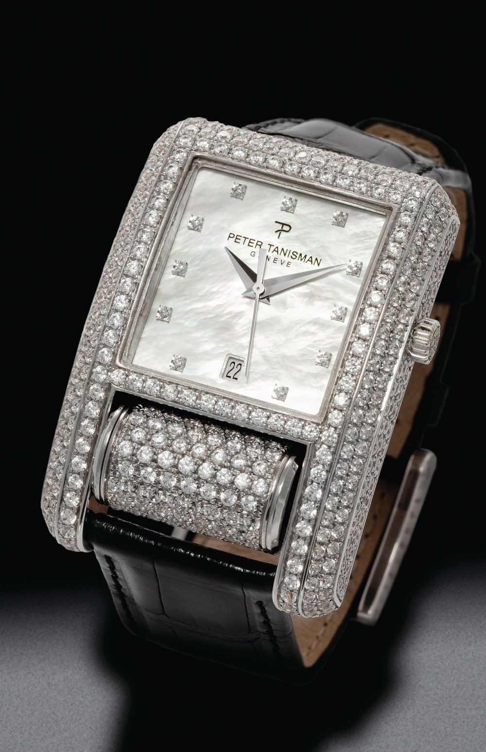 Black alligator leather with gem-set 18K white gold pin buckle