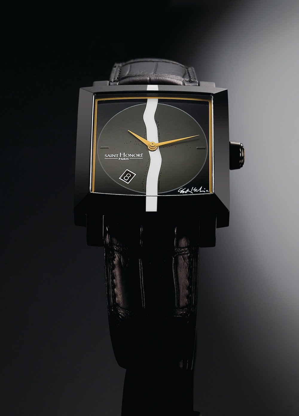 For the 125th anniversary of Saint Honoré, CharlElie has created a watch-as-artwork inspired from the streets of New York, with its exclusive, sleek design. The timepiece is contemporary, sophisticated and refined, while being a meditation on Time itself. The watch portrays Time in two ways: linear time, with the straight white line that never ends, but also cyclical time, the eternal new beginning represented by the circle on the dial. THE LINE will appeal to aesthetes, but also connoisseurs of the finest watch mechanisms: this timepiece can also be admired through the clear case-back displaying the movement, with its pearly finish and diamante snailed decoration, oscillating weight with a “Côte de Genève” finish in black gold. The watch makes beautiful use of lacquer, as the line crossing the dial is in white lacquer, contrasting with the dial itself painted in matt black. Limited Edition of 125 pieces.
